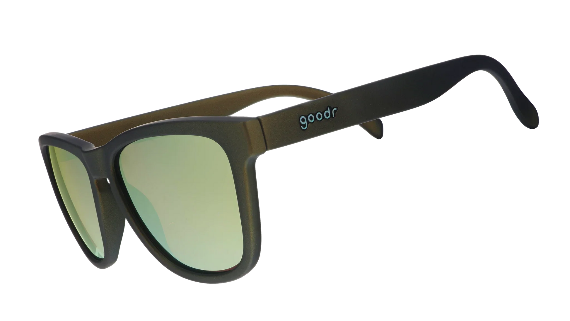 These are the OG Goodr style. No slip- constructed with a special grip-coated frame to eliminate slippage when sweating. No bounce- snug, lightweight frame with a comfortable fit that prevents bouncing while you crush your workout. Polarized- glare-reducing, polarized enses with UV400 protection block 100% of harmful UVA and UVB rays. OGs are a classic frame shape with timeless appeal that will always be in style.
