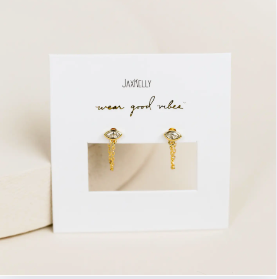 These chain huggies feature a tapered white cz set in a bezel connected to the butterfly backing by a delicate chain. Tarnish Free - Long lasting protective coating safeguarding your jewelry from sweat, water, and more. Sterling Silver – 18K gold plating Hypoallergenic – Lead Free Stone width 5mm The entire chain measures 20mm