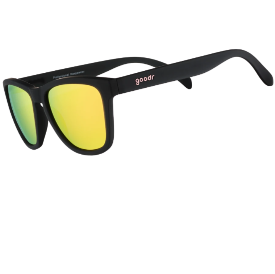 Classic shape with new levels of style and performance. Translucent black OG frames with pink reflective lenses. We designed these shades to look good and fit comfortably on your face whether you're running laps on a track or perfecting your avatar. No-slip, no-bounce performance, plus full UV400 protection and polarized lenses.