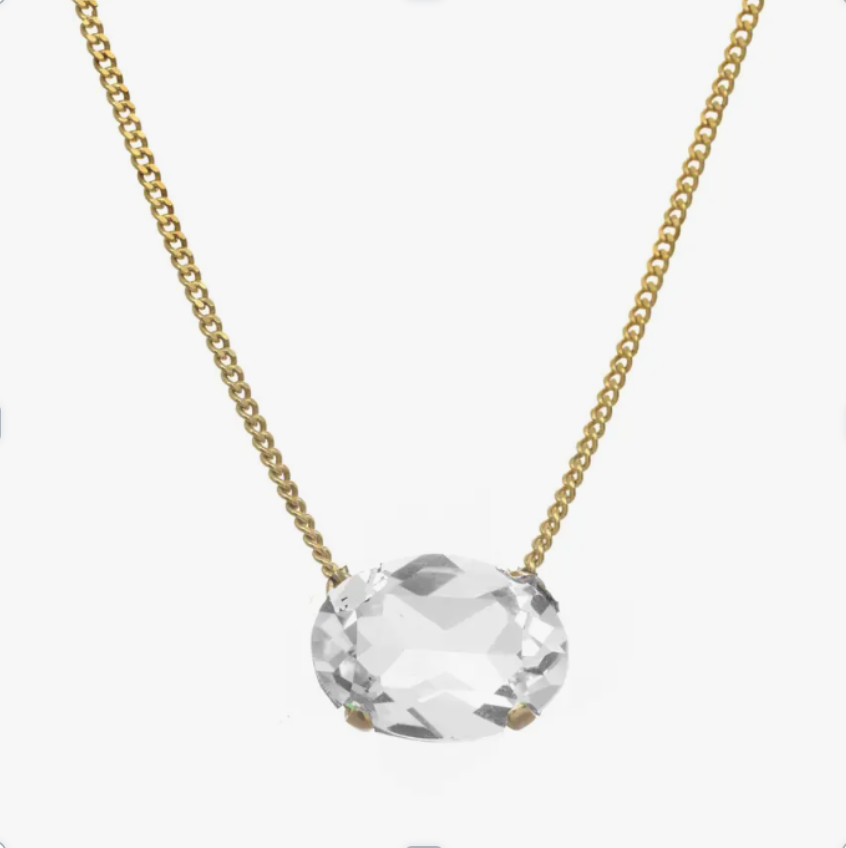 Antique Gold plated brass base metal Swarovski crystal Necklace.