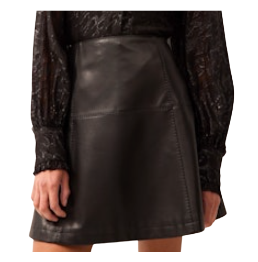 This versatile mini is fitted at the waist and hips with a gentle flare to create a flattering and playful silhouette. Cut from our new and improved soft vegan leather pictured here in black, pairs well for a chic fall look.