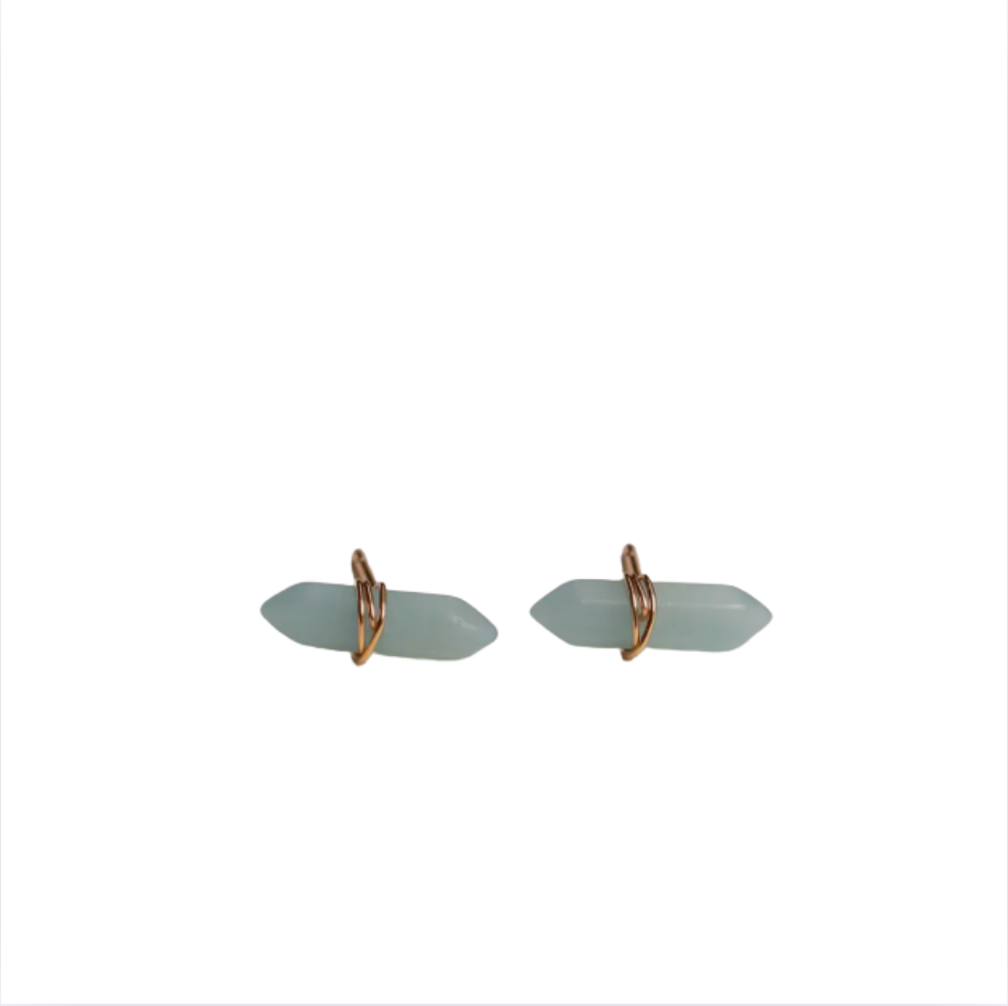 Double-pointed polished gemstone wrapped in 18kt gold over sterling silver wire. Butterfly backings. Natural stones will show variation in tones and color. Tarnish Free - Long lasting protective coating safeguarding your jewelry from sweat, water, and more. Sterling Silver Posts – Gold plating over silver Hypoallergenic – Lead Free