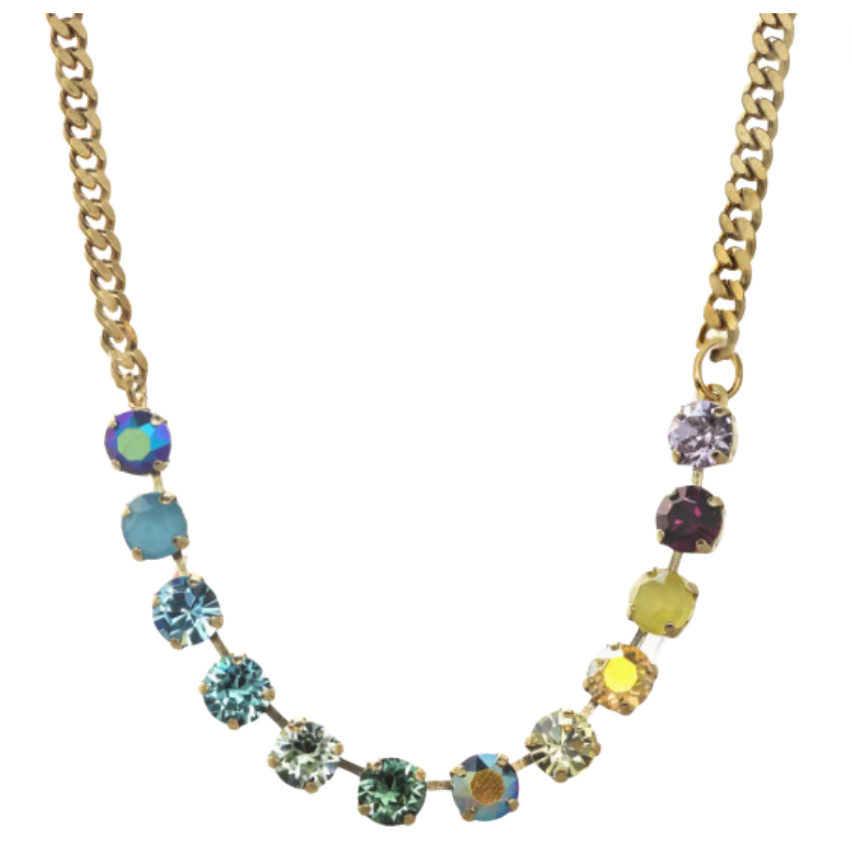 Glimmer and shine in this Mini Oakland! This stunning necklace is lined with high-quality crystals. Perfect for any occasion, this 13" necklace with a 3" extension has you covered from day to night.