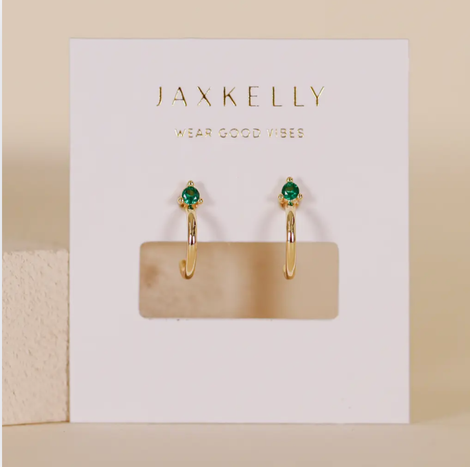 These small hoop earrings feature a straight-back post with a mini cz that adds a pop of color. The hoop hugs the ear and can be worn anywhere.